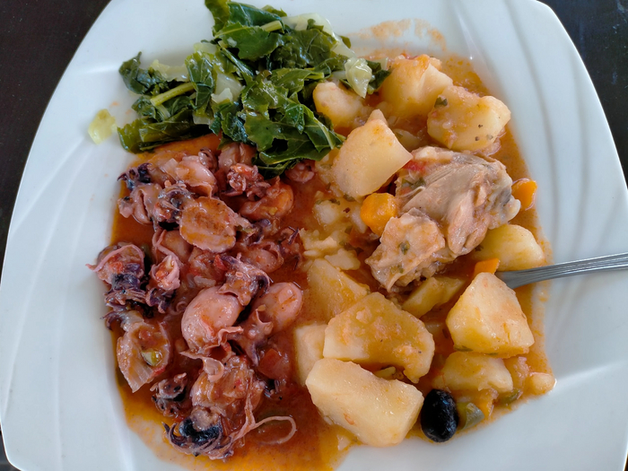 Первой мы готовили треску. Промывали, варили, снова промывали, но все равно хрустел песок, и было очень солено. Видимо, эту рыбу вялили прямо на песке на пляже, в другой рыбе песок уже не попадался.