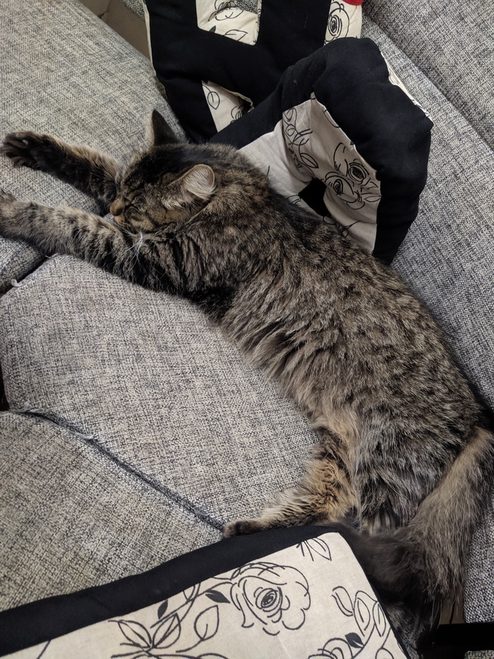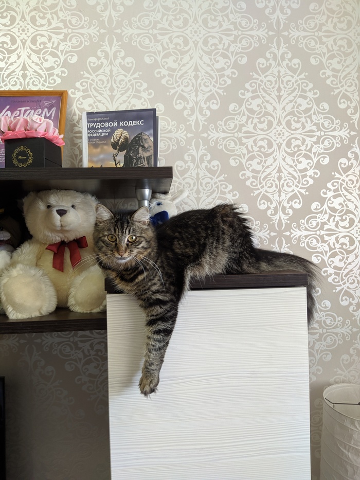 На момент карантина 2020 года, этот пуховое вибросущество держит в страхе все пакеты, ворует и нагло пожирает хлеб и вафли.
