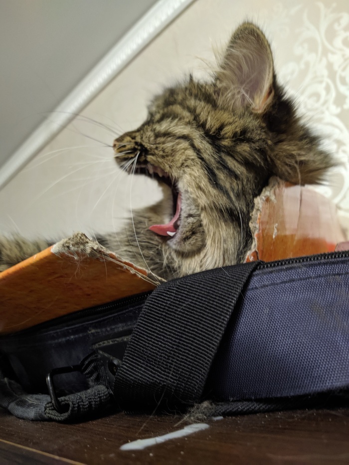 Через пол года, превратилась в несуразный ком шерсти с телом кошки и мордой котенка