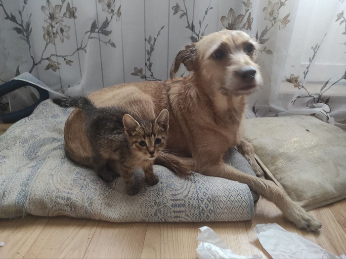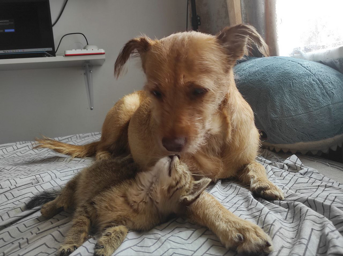 В один теплый июльский день Зевс решил открыться мне с неожиданной стороны. У местной дворовой кошки подросли котята. Мы и раньше их замечали, и малыш проявлял к ним деликатный интерес, но в этот раз он нанюхал котенка, который лежал в стороне от других и не шевелился. Зевс включил режим свистящего чайничка, рванул к этому комку и лег рядом с ним, а на попытки увести домой отвечал уверенным сопротивлением. Стало быстро понятно, что без этого котенка я домой сегодня не уйду.