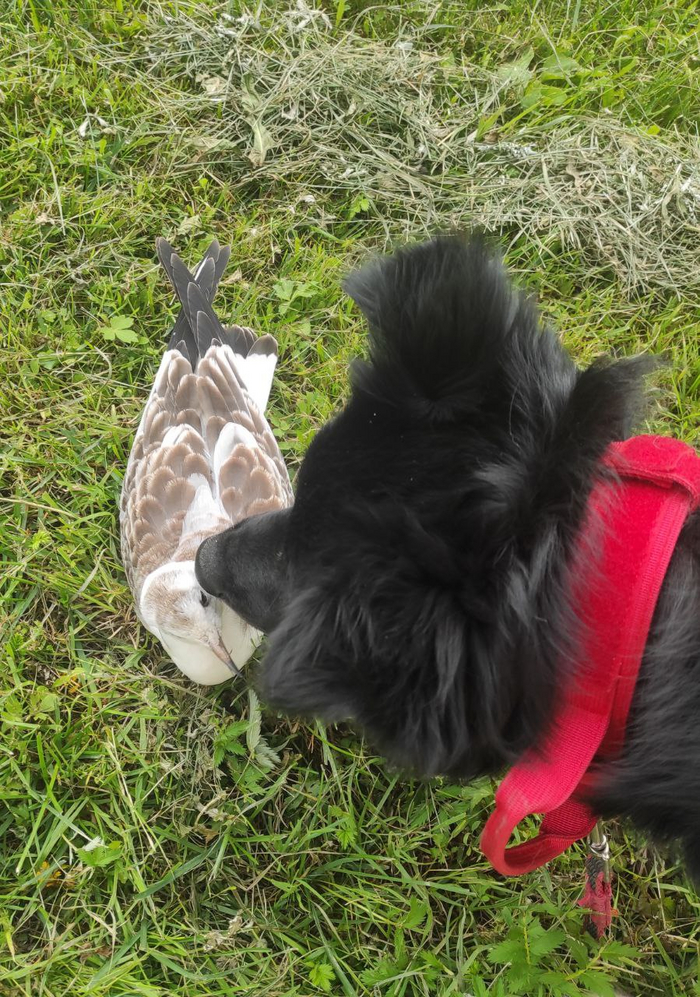 Зевс с Молли спасали не только косек. Случалось и вместе искать сбежавших бобиков, и провожать потерявшихся самовыгульных. Один раз Зевс нашел умирающего крысеныша и вновь запел свою песню "Мама, давай его заберем и вылечим". А на прошлой неделе потребовал у меня внимания к птенцу чайки.