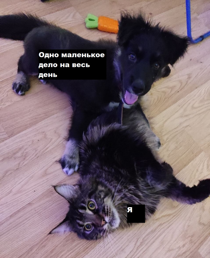 Я не понимала, как с ним корректно взаимодействовать. Вообще. Читала и смотрела множество информации о воспитании, кушала антидепрессанты и взращивала в себе безусловную любовь и бесконечное терпение. Он совершенно не контролировал свои туалетные позывы и запрудил мне всю кровать, а еще кусался. Больно и бесконечно. Через месяц совместной жизни я была похожа на жертву домашнего насилия - вся в синяках, кровоподтеках, с огромными мешками под глазами и упорно твердящая в ответ на косые взгляды, что у меня все хорошо. Спасибо проживавшему на тот момент у меня в доме мейнкуну Митеньке, который вовремя понял, что я невывожук, и решил взять шефство над мелким, чтобы воспитать настоящего котопса.
