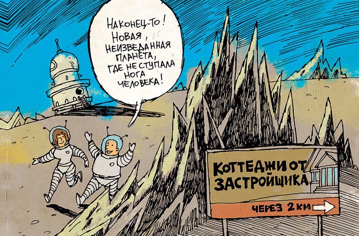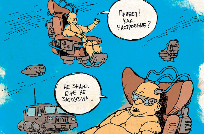 Из газеты «Правда Утопии». «Там, в большом космосе, идет большая работа. Монтажники космоцентра уже приступили к состыковке элементов первого космического города, способного вместить более 50 тысяч жителей. Его первыми обитателями станут ученые из исследовательского центра им. Циолковского — именно здесь проходит сейчас передний край борьбы с гравитацией».