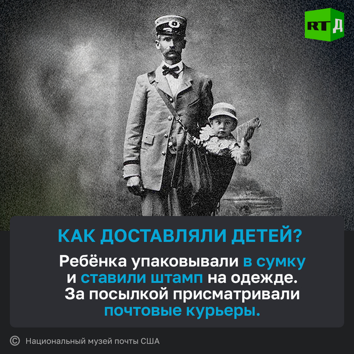 Доставка ребёнка по почте. Такая услуга была распространена в США в середине XX века.