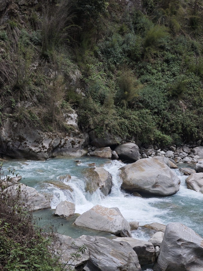 Под пение птиц и шум реки доходим до Lama Hotel. Торчать полдня и спать в номере без удобств нам не хочется. Судя по темпу, мы успеваем дойти до Сьябрубеси до темноты, даже с учетом часа на обед. После обеда настроение меняется на "надо дойти". На лесные красоты не обращаем внимания.