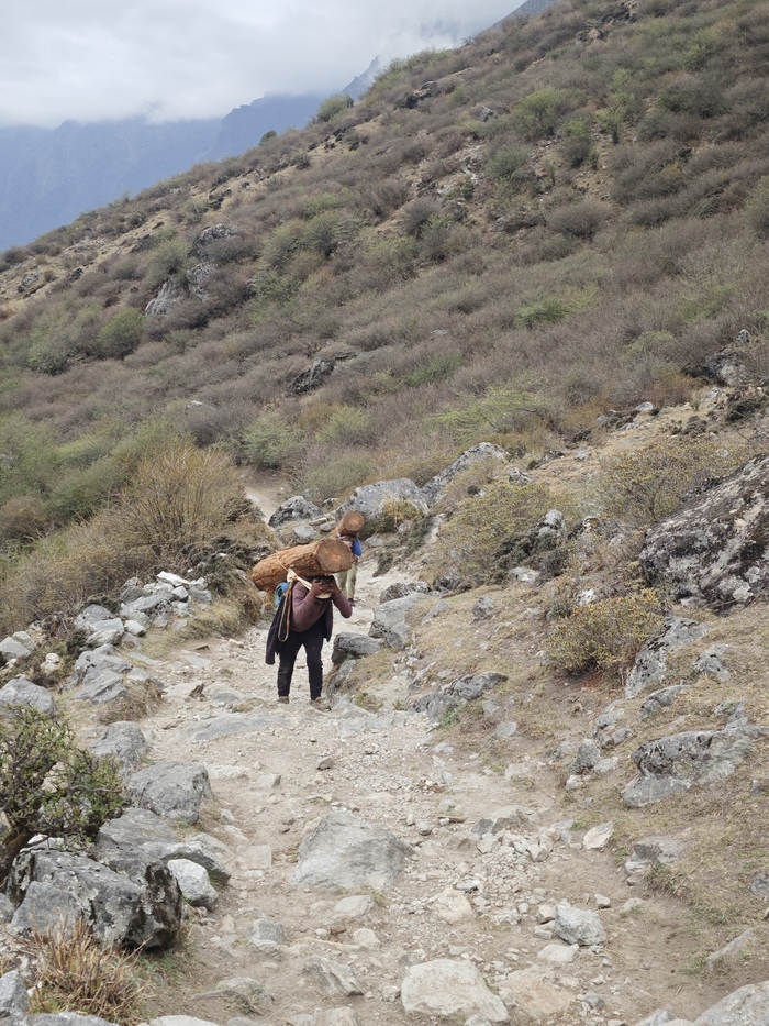 Утро - время когда местные поднимают грузы наверх. Встретили несколько караванов нагруженных мулов и много носильщиков с разными грузами. Со слов гида - мул несёт 50-60 кг. Про людей не спросили, но некоторые несли явно больше.