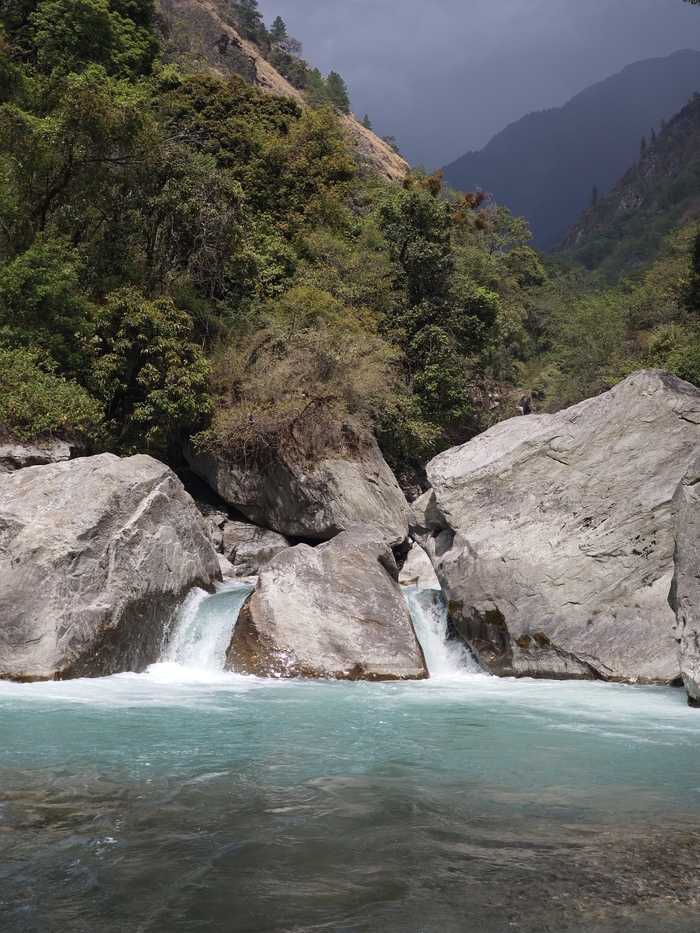 Завтрак, быстрые сборы и пока французы выползают из номера мы уже топаем вниз. Программа минимум - спуститься до Lama Hotel, программа максимум завершить трек в Сьябрубеси. С погодой повезло - немного облаков на уровне вершин гор.