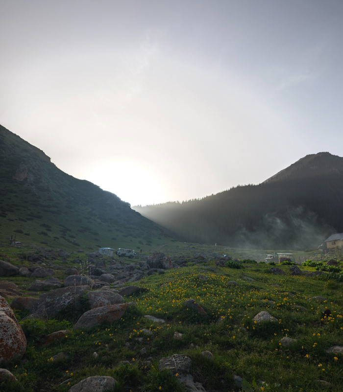 На следующий день встречаем рассвет, завтракаем, представительницы прекрасного устраивают фотосессию и часов в 10 мы снова на буханке едем обратно в Каракол.