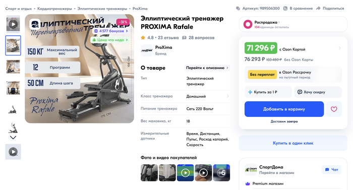 Мониторю цены на элипсы для дома. Есть неплохой, новый стоит от 65 до 80 сейчас. Нахожу объявление на авито. Б/у. Цена: "покупался за 89 000 скидка 25%", т.е. 66750₽. Если что, б/у такие стоят 40-55К.