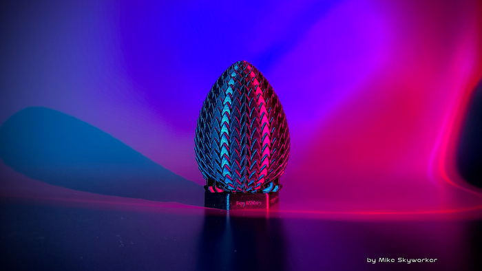 В этот раз конструкция попроще. Зато стилизованная под драконье яйцо.