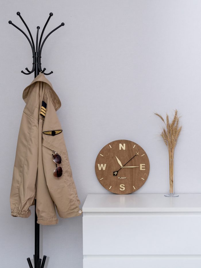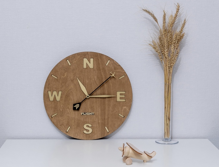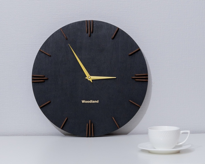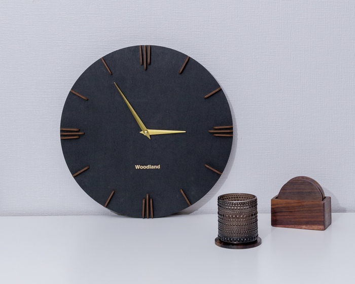 Часы вышли в совершенно другой тональности — менее контрастные, и созданы для другого интерьера. Золотой цвет нам казался пошлым и избитым, особенно в сочетании с деревом, но сатиновая текстура оказалась весьма сдержанной. И получился дизайн в классическом стиле.