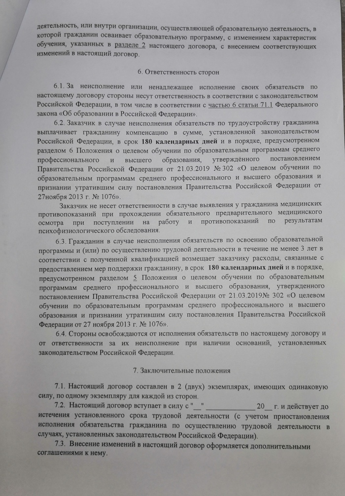 3. В договоре указано, что он не может быть расторгнут по соглашению сторон, однако, если я не ошибаюсь, то в постановлении правительства о целевом обсуждении сказано, что по соглашению сторон договор не может быть расторгнут только при условии, что я поступал по целевой квоте, однако я, как говорил выше, заключил договор уже в процессе обучения. Это считается за ошибку, какие у этого могут быть последствия?