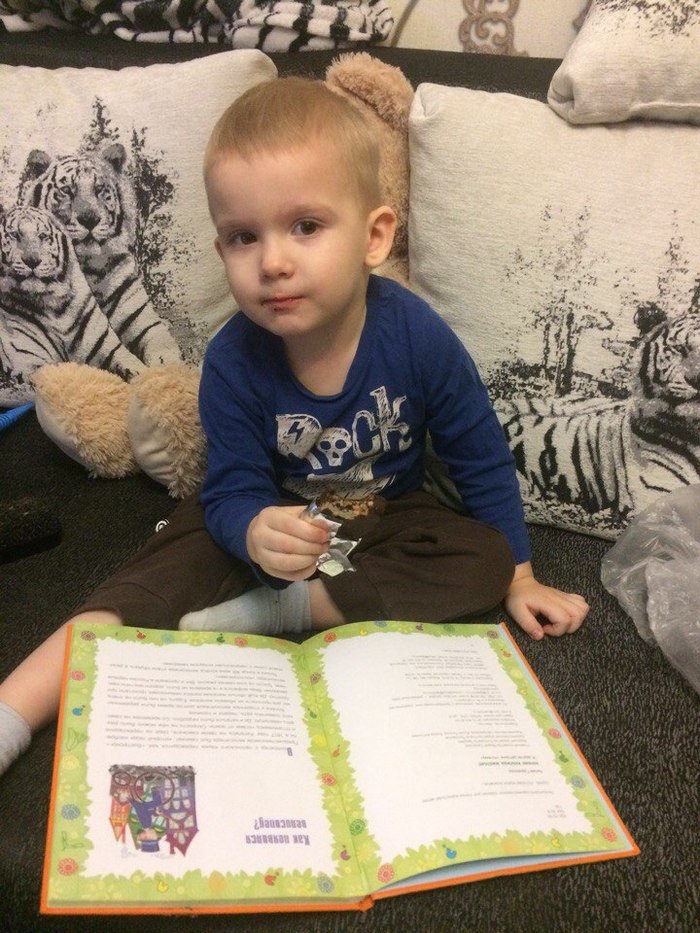 Конфета сразу оказалась во рту сына, а книжка у него в руках: