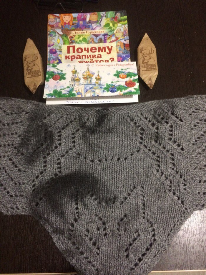 Еще в подарке была детская книжка, что явилось для меня шоком, так как я ни словом не обмолвилась, что у меня есть ребенок. Ну и конечно же открытка, с теплыми словами и инструкцией для ухода за платком.