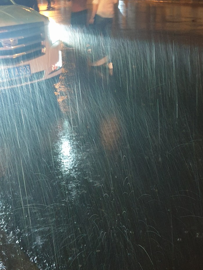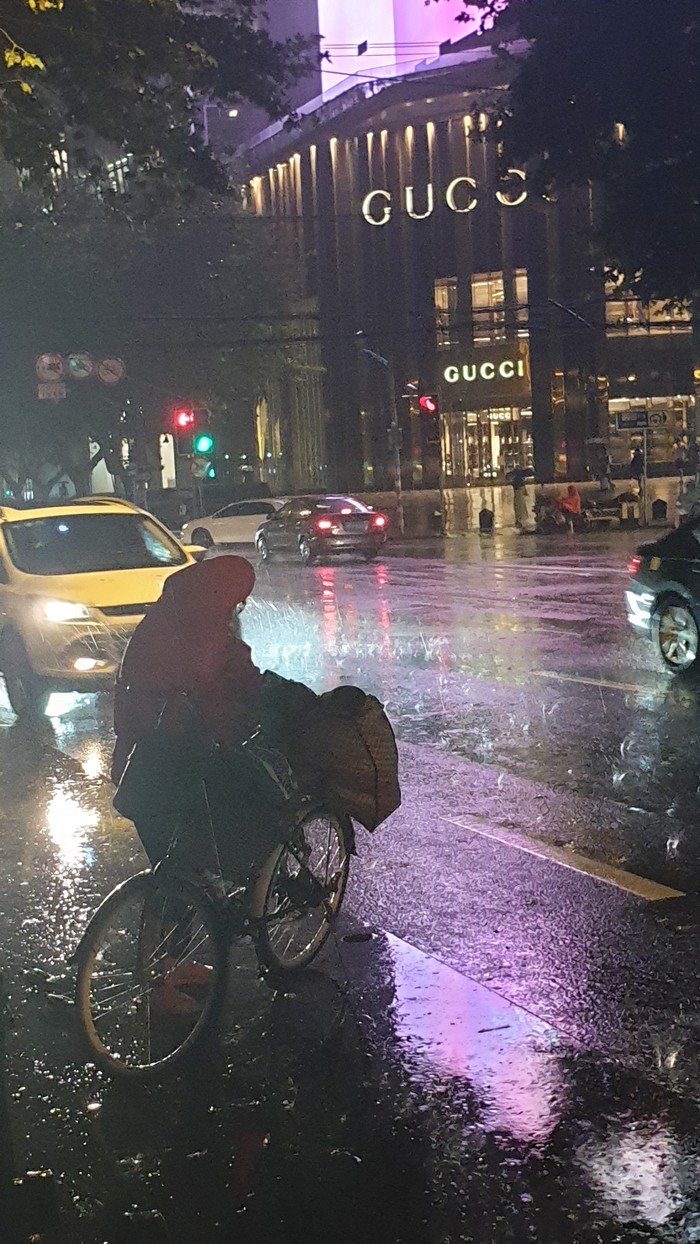Вечером был в центре и попал под дождь. Улицы почти пустые, такси вызвать нереально - китайский uber DiDi показывает подачу машины через час. Кстати, повышенных коэффициентов здесь нет