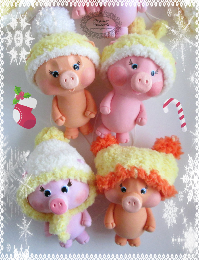 И вот я налепила новогодние елочные игрушки, слеплены они из зефирной полимерной глины, из такой глины игрушки получаются очень легкие, глина мягкая, приятная на ощупь!) разобраться у самой так и не получилось, кто это мыши или крысы:))? В этом году не самый приятный символ года, как приклеила на них усы, появилось ощущение "бррр..":))) Нна прошлый новый год лепить было приятнее- последние фото- новогодние хрюшки)