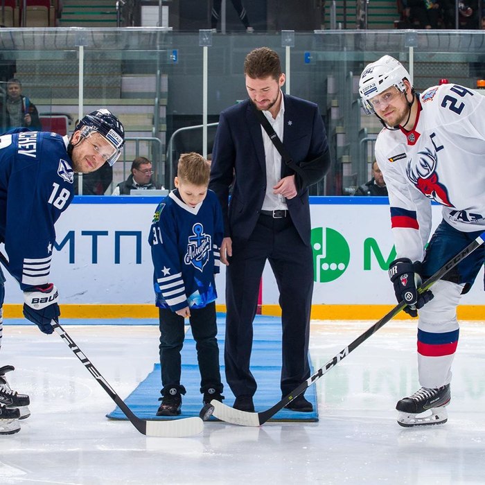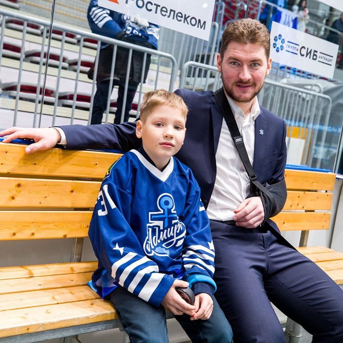 Неизвестно насколько сложными вышли переговоры главного героя новогодних праздников и форварда ХК «Адмирал», но мечта юного болельщика сбылась! Он вместе с Василием понаблюдал за раскаткой команды прямо со скамейки запасных, а затем вышел на символическое вбрасывание.