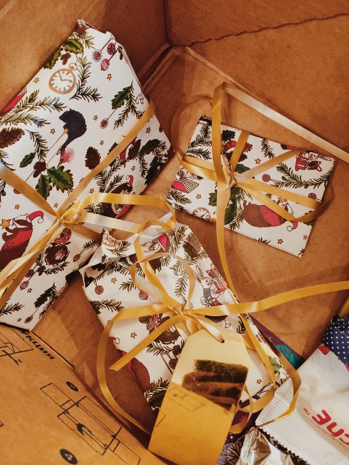Все было упаковано очень красиво, но кое-какие подарочки пришлось распаковать при получении.