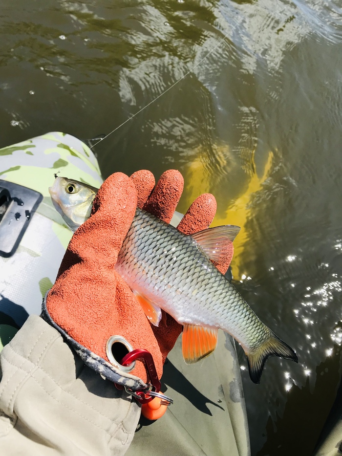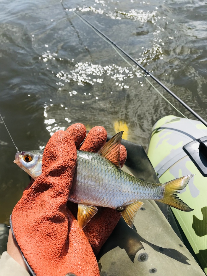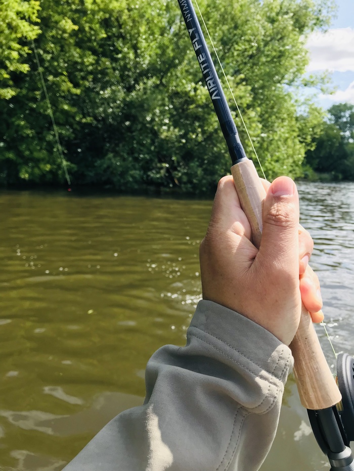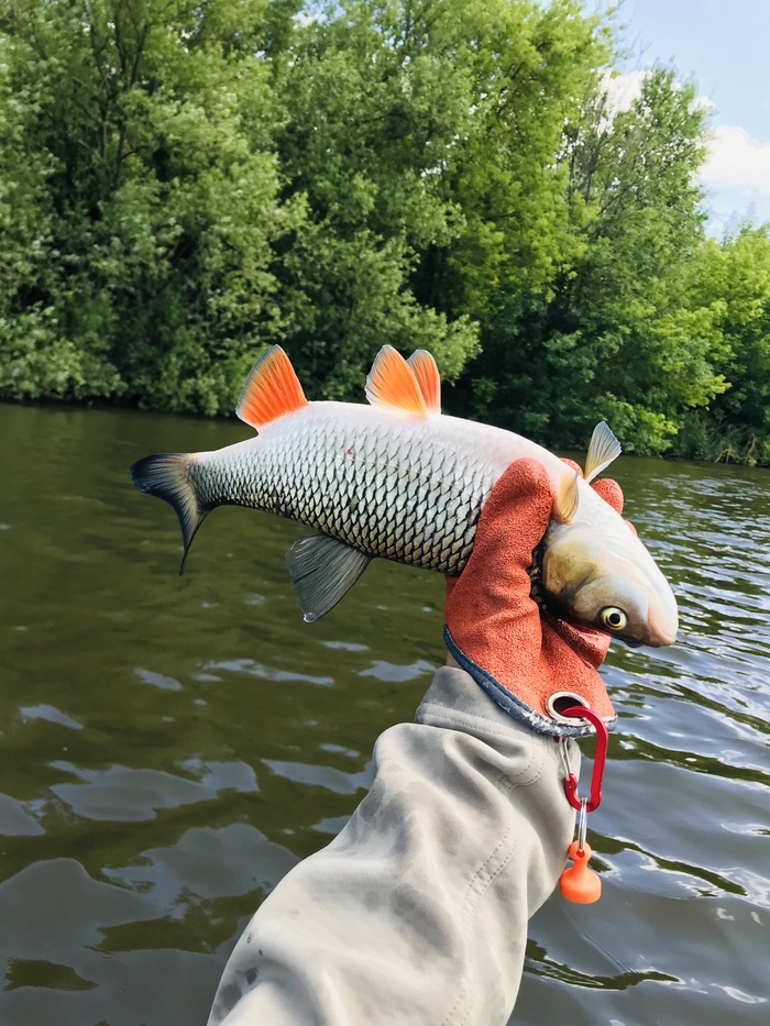 Снова порыбачил на вечёрке. Вода уже прогрелась. По началу донимала мелочь, но ближе к финишу получил классическую поклёвку «отдай удочку» От выскальзывания спасла самодельная ручка иначе б точно упустил. Вечерний клёв был коротким, но очень ярким и запоминающимся. Рыбка уже готовилась ко сну и решила слегка закусить моей нимфой. Последний голавль есть отказался - уткнулся мордой в ветку и игнорировал проводки. А потом и вовсе дождик начался…