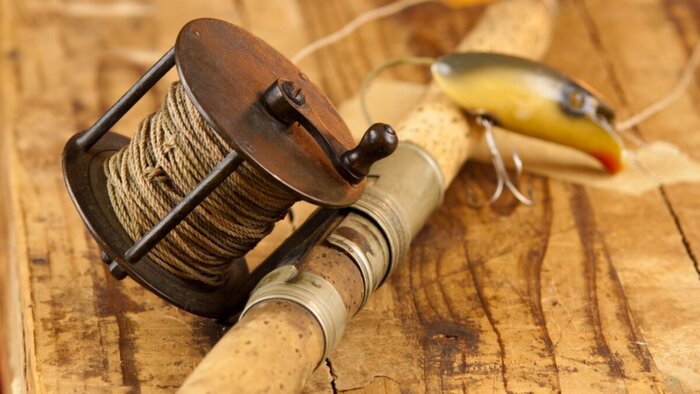 «Катушки деревянные, с передвижным тормозом. Для ловли крупной рыбы, для «дорожки» и «спиннинг».