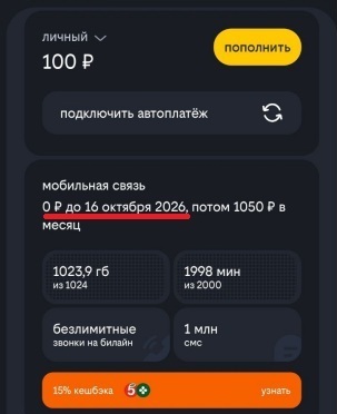 Ну, т.к. инет у Билайна тоже норм не работал - ну и ладно, решил наблюдать, думаю, через год вернусь к этому вопросу. И у меня в приложении всегда отображалось, что "следующий платеж - 16.10".