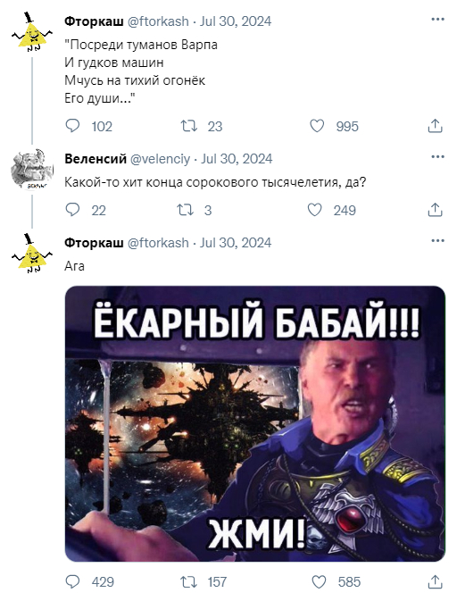 1560 MirVcegda23 Warhammer 40k Звездобойщики и Астрономикон 1 год назад Показать полностью 1 Юмор X (Twitter) Warhammer Warhammer 40k Дальнобойщики Wh humor Скриншот 31 Ещё 0
