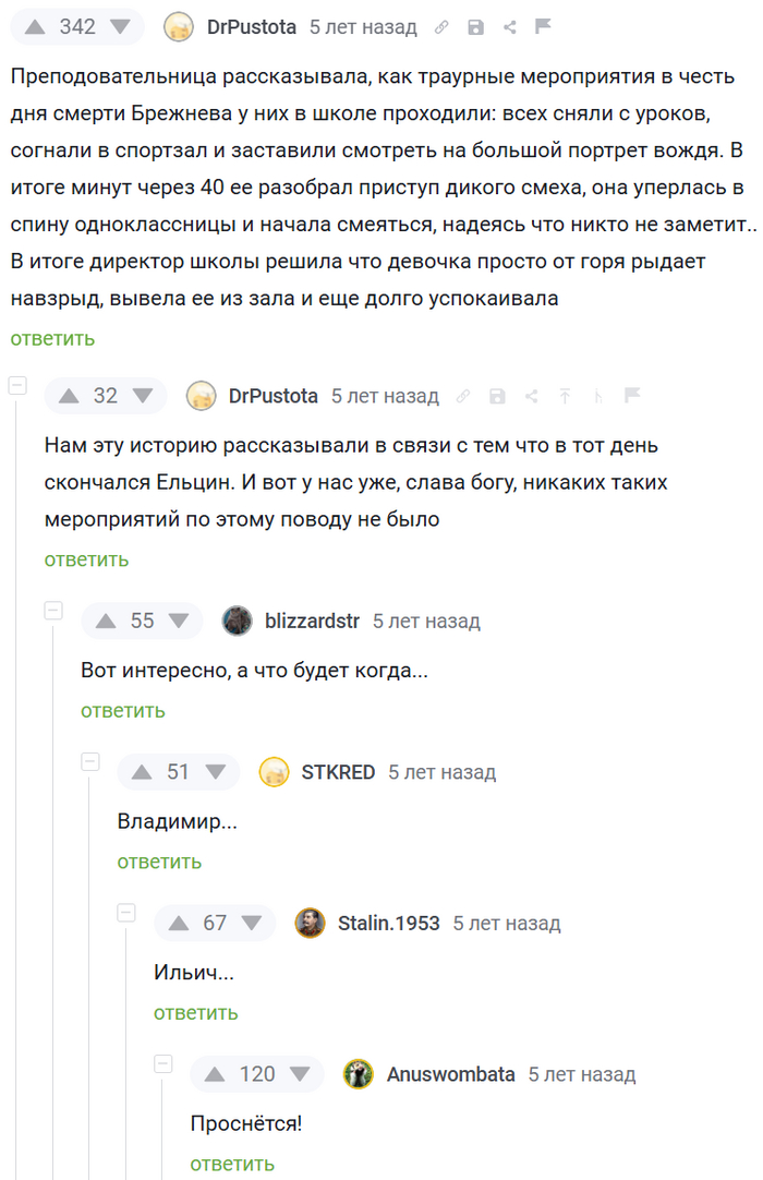 5493 MirVcegda23 Внезапно2 9 месяцев назад #comment_151930792 Показать полностью 1 Юмор Комментарии на Пикабу Скриншот Ленин Леонид Брежнев Смерть 198 15 5 3 Ещё 0
