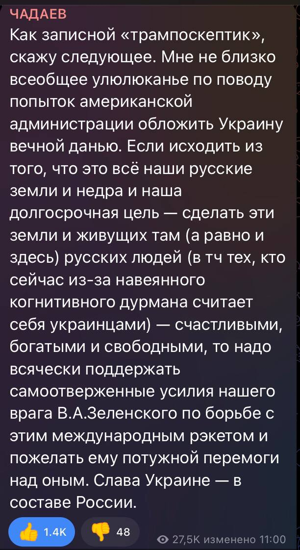 85 MirVcegda23 Лига Политики Иронично 9 месяцев назад Автор: https://t.me/chadayevru/3587 Показать полностью 1 Юмор Скриншот Картинка с текстом Политика Украина Россия США Владимир Зеленский Дональд Трамп Telegram (ссылка) 7 7 1 Ещё 0