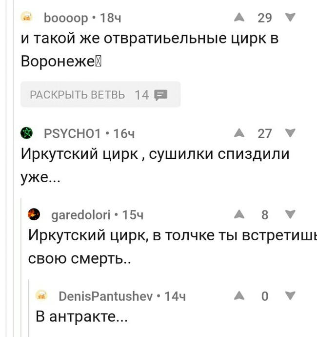 Miracle007 Скриншоты комментов Божественный коммент 7 лет назад https://pikabu.ru/story/korotko_i_s_kartinkami_pro_irkutskiy... Показать полностью 1 Комментарии Цирк Отличный коммент