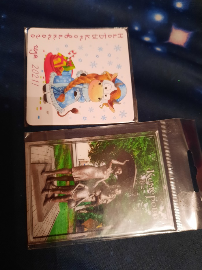 Магнитики: новогодний и с памятником "Погода в доме" - если я правильно определила.