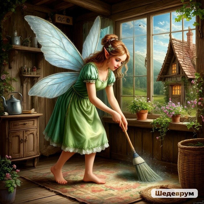Пятая - фея Уборки. Нравиться жить в чистоте и порядке. Уверенна, что легко найти необходимое, если оно лежит на месте.