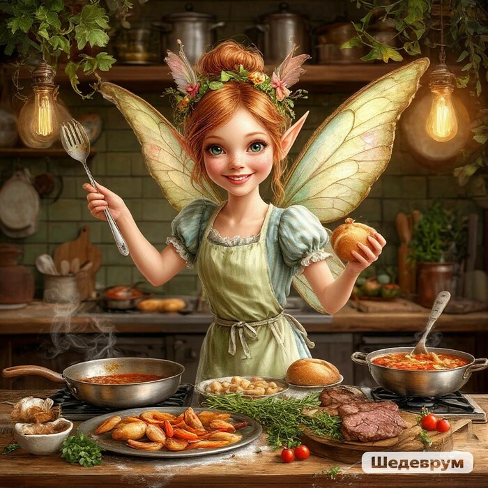 Седьмая - Кулинарная фея. На кухне из любого набора продуктов создаёт вкуснейшие блюда.