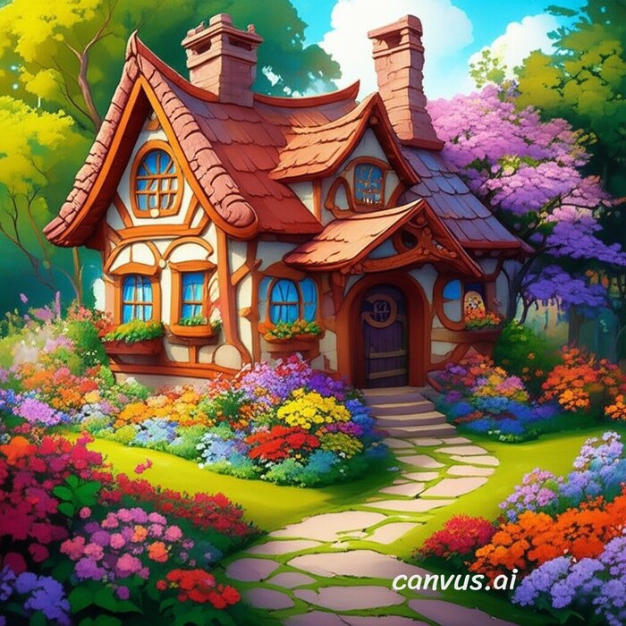 Эти феи живут в домике, окруженным цветами, в волшебном лесу.