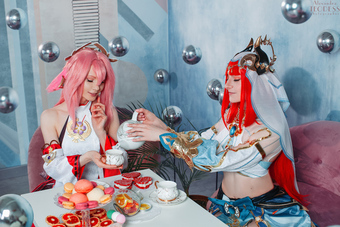 В конце прошлого года удалось примерить образы Шень Хэ и Гань Юи, делали новогоднюю съёмку в милых и более пикантных костюмчиках(вторые можно будет увидеть на Бусти)