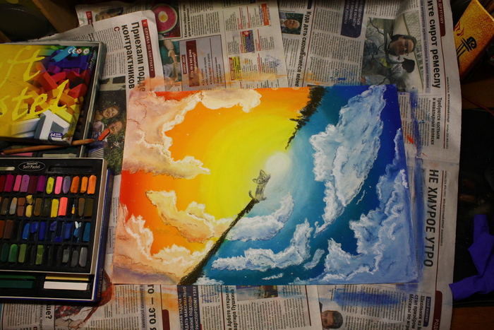Ну и собственно новая картина, фантазия на смену дня и ночи + котик =)