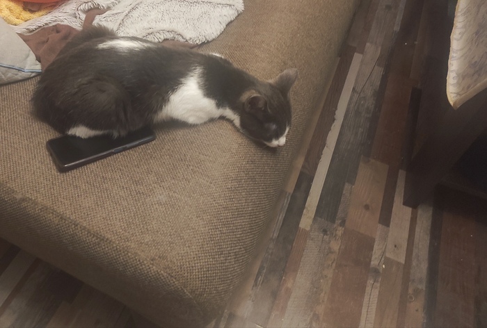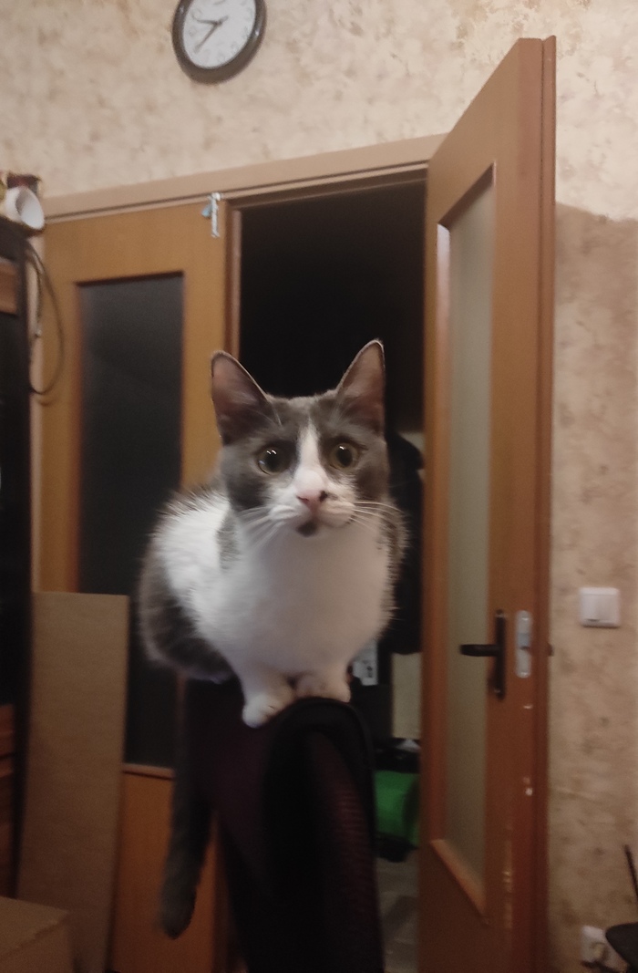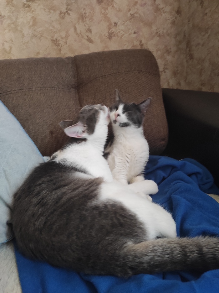 Но иногда ей не хватает мужского внимания и она приходит его получать. Ее вылизывают и греют (она у нас мерзлявая и любит там где потеплее)