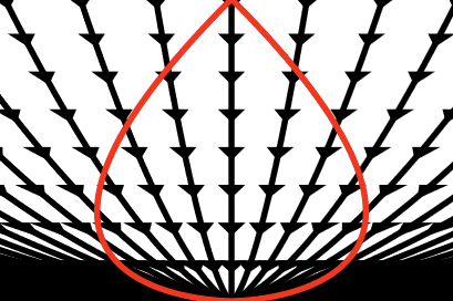 Черные линии – это уже знакомые вам параллели, а вот красная капля – это наш горизонт событий, который из-за расширения Вселенной становится все меньше и меньше. Мы сейчас (условно) находимся на середине центральной линии.