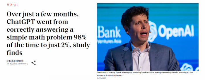 Несколько месяцев назад на нас посыпались, казалось бы, сенсационные новости, что ChatGPT и другие нейросети стали "тупеть". Те задачки, которые они поначалу щёлкали как орешки, теперь оказались им не под силу