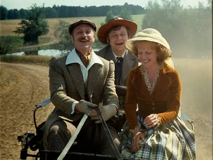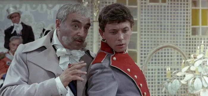 Ещё мне нравится его томный драматург Борзиков в чудесном водевиле "Лев Гурыч Синичкин". Как же он здесь напевает: "Нет, я больше не могу… Оскорблений слишком много…"… Чудесно!!! А как хорош Олег Павлович, сыграв вместе с супругой в роскошной ленте "Ах, водевиль, водевиль", отставного прапорщика Акакия Ушицу.