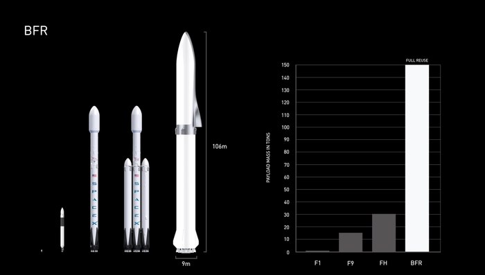 - Данный план BFR, выглядит уже куда более реальным, чем ITS, да ITS выглядит лучше и красивый аппарат, но его скорее всего делали рисовали дизайнеры, а не инженеры. BFR уже похож на аппарат, к которому приложили руки инженеры.