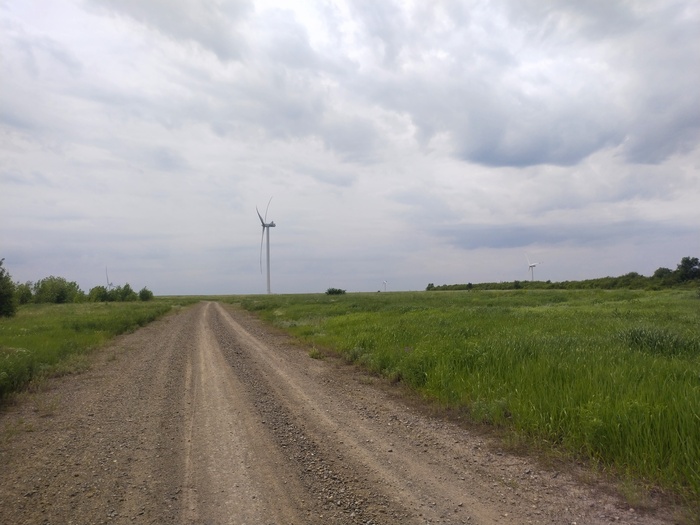 Ну, теперь в обратный путь. Вот пейзаж с ветрогенераторами.