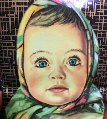Названная в честь дочери В.Терешковой шоколадка, долго не имела общего оформления в дизайне и тогда «руководство фабрики через газету «Вечерняя Москва» объявило конкурс на фотографию девочки, которая впоследствии станет темой оформления шоколадки. В конкурсе победила фотография заслуженного работника культуры РСФСР Александра Геринаса, которую тот сделал в 1960 году. На фотографии была изображена восьмимесячная дочь Геринаса Елена в шёлковом платке.»(с)