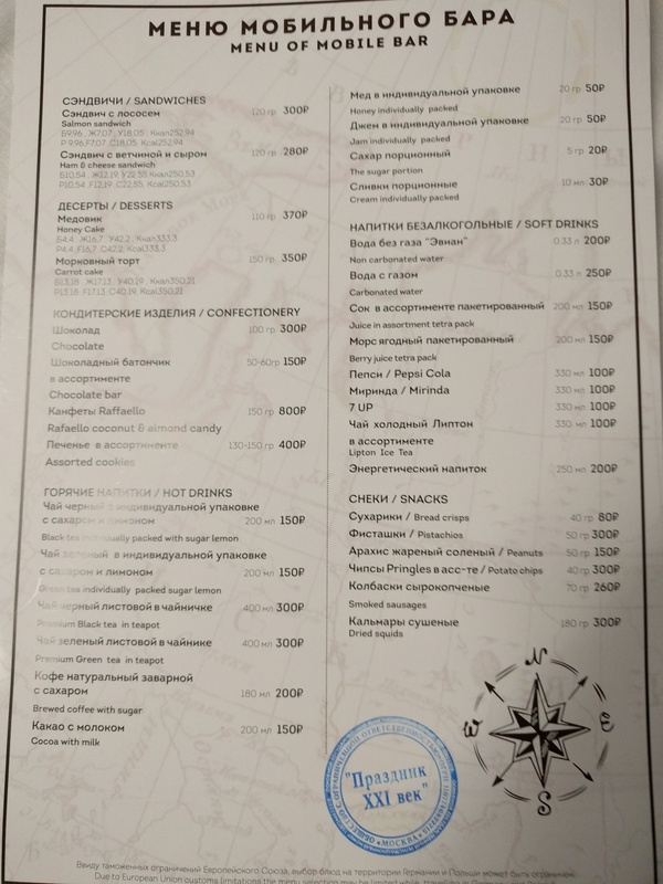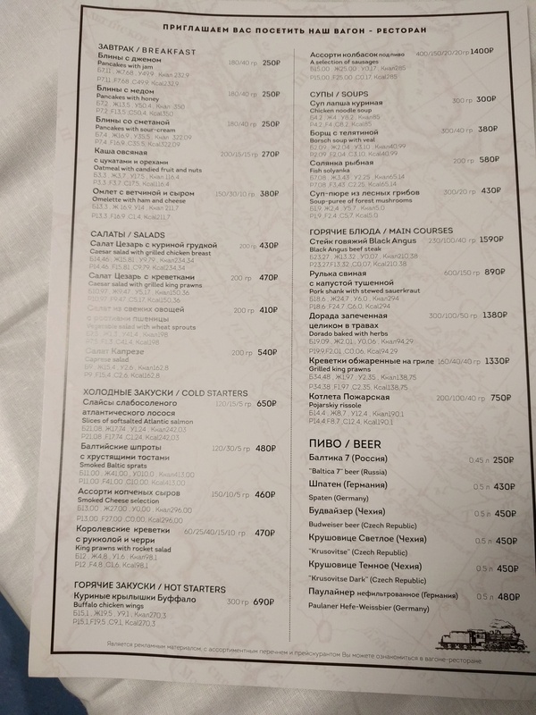Отдельное слово хотелось бы добавить про вай-фай - там есть вай-фай, который, как написано в условиях пользования - не обязательно будет везде работать - ок, платный - ну, ок, из бесплатного - сведения о поезде, расписание - приятно, и ещё фильмы можно глянуть.. но там все фильмы, обзоры которых я смотрел у бэд комедиана, так, что я просто читал книгу - тем более, что, не так часто я езжу на поездах, а книгу почитать и чаю попить в купе - романтика ж!