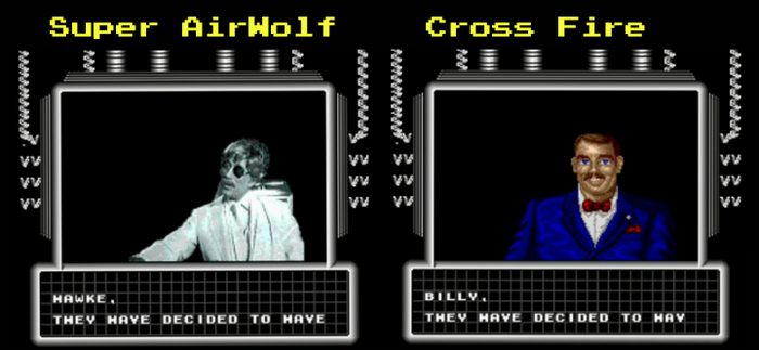Неплохая игра для приставки Сега. В Японии вышедшая под названием Super Airwolf (Воздушный волк) - видеоигра в жанре скролл-шутер созданная по мотивам американского телесериала «Воздушный волк». Из-за проблем с авторскими правами, в Америке игра «Супер Аир Вольф» вышла под не оригинальным названием «Кросс Фаир» в отличии от Японии, где японскому подразделению Sega Corporation удалось договориться с правообладателями на использование одноименного названия фильма и главных героев в игре.