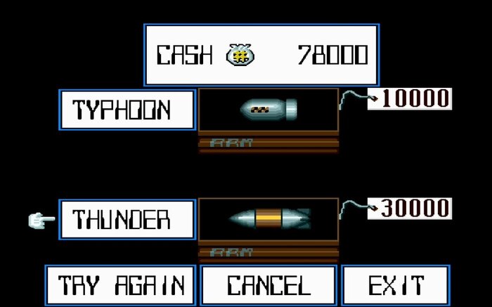 Thunder - две ракеты создающие два мощных электрических заряда, уничтожающие всех врагов на экране.
