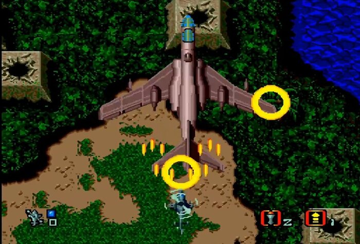 Пехоту можно не уничтожать с вертолета. Не стоит пытаться уничтожить как можно больше врагов, самым правильным будет лететь именно по тому пути, по которому вы планируете потом пробираться пешком, чтобы на этом отрезке уничтожить как можно больше пушек. Во время игры за Билли в первую очередь стоит уничтожать солдат, пушки лучше игнорировать и убегать от них, но их тоже можно уничтожать. Для этого необходимо по ним стрелять в прыжке. Также против пушек хорошо использовать Ракетомет. Он легко уничтожает практически все пушки в игре, без необходимости делать прыжок.