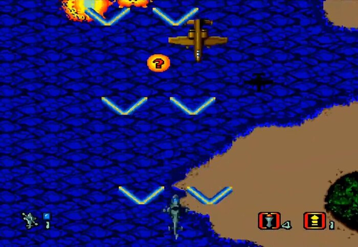 Если при прохождении первых трёх уровней, вы потратили много жизней, то на новой карте, лучше начать игру с миссии «F». В этой миссии наш помощник вместо улучшений оружия, скинет сразу три жизни, которые останется лишь подобрать.