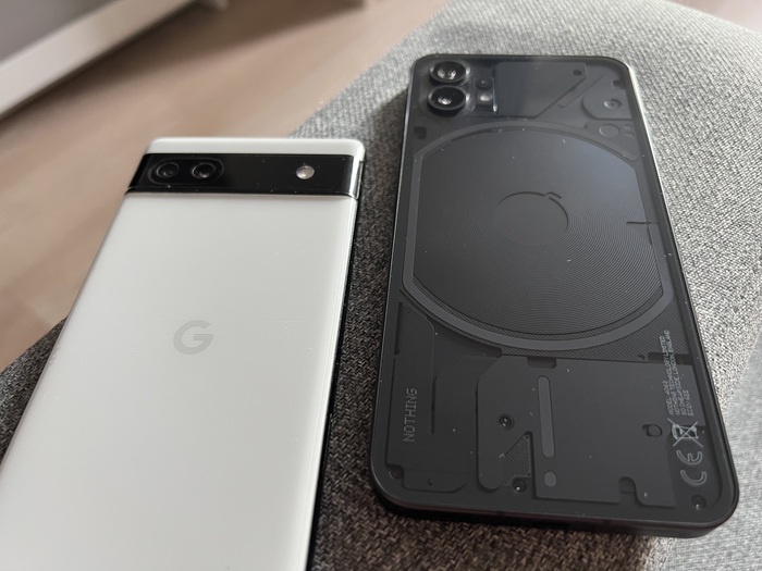 По цветам в этом году так — белый, черный, синий и натуральный. На темные оттенки смотреть не рекомендую, они как-то очень активно пачкаются. А на синем, например, остаются какие-то следы то ли от грязи, то ли от чехла (фото прикладываю). Наиболее оптимальные цвета для iPhone 15 Pro — белый и натуральный. Последний я и купил. Он немного отличается в зависимости от освещения. Натуральный титан чем-то похож на шестерку в цвете Space Gray. Смотрится отлично, интересно и в чем-то классически.