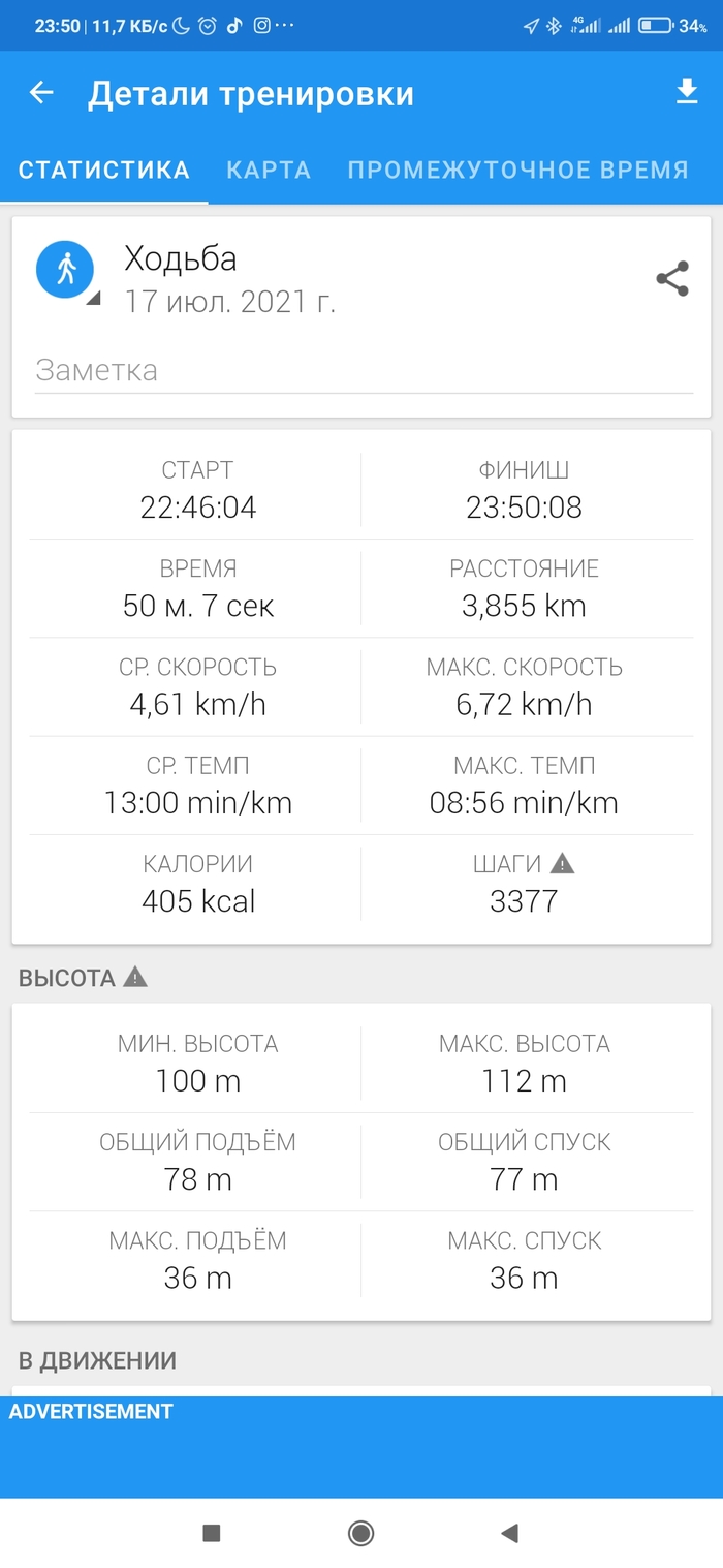 2. Продолжаю вышагивать каждый вечер по 4-6 км, один вечер пропустил, поздно вернулся с работы.