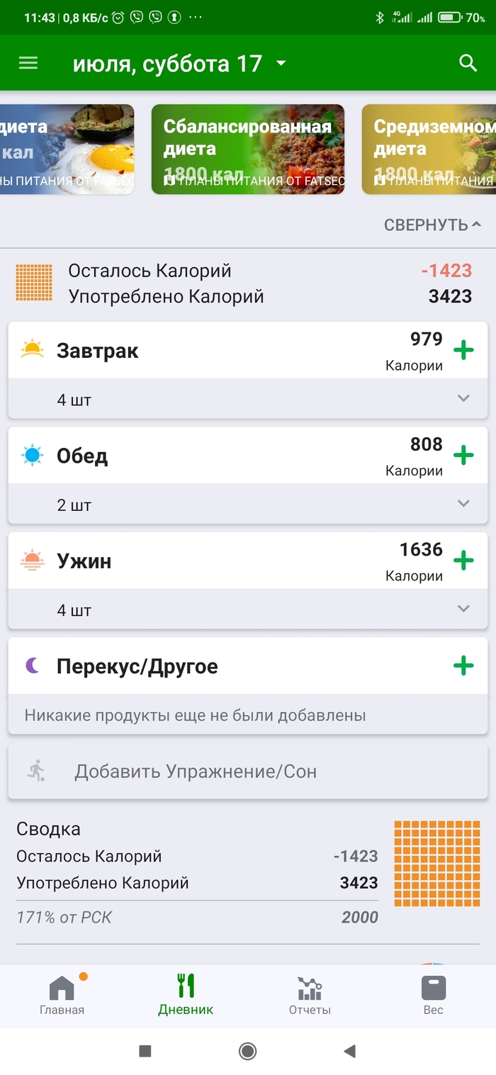 3. По прежнему пытаюсь ограничить себя в рамках 2000 ккал, но по прежнему больше не выходит чем выходит.